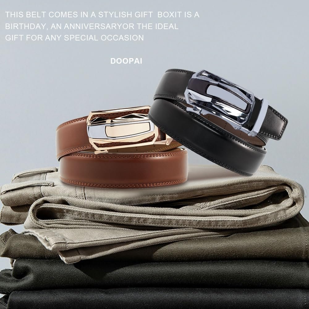 DOOPAI Belt Men, Ratchet Belt Dress Adjustable 1 3/8″ Genuine Leather Designer Belt, Size Length Can be Cut, with Gift Box