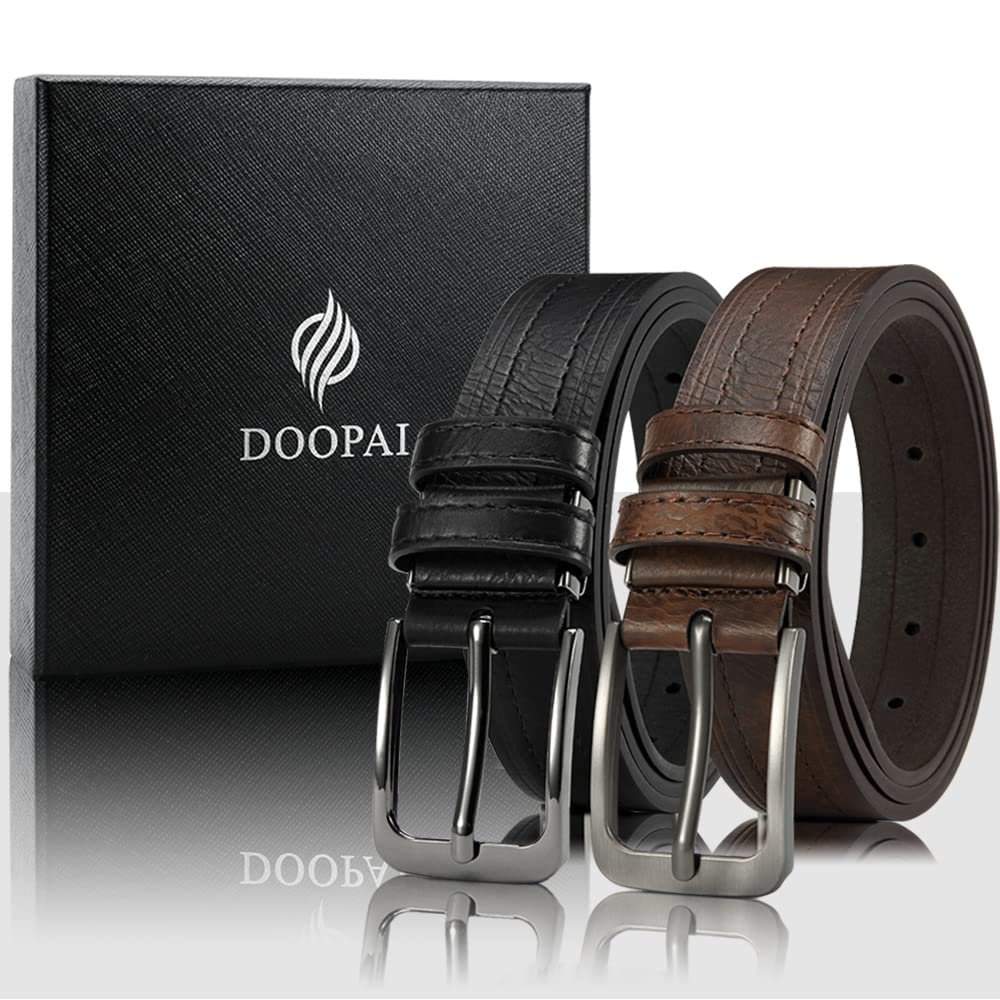 DOOPAI Men’s Ratchet Leather Belt Set – 2 Pack Sliding Belt Adjustable For Gift Mens Dress Casual 1 3/8″,Cut for Fit