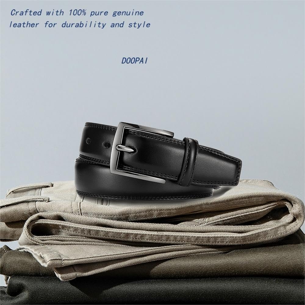 DOOPAI Mens Dress Belt – Genuine Leather Dress Belts For Men,Casual Suit Jeans Belt-Single Prong Buckle black belt