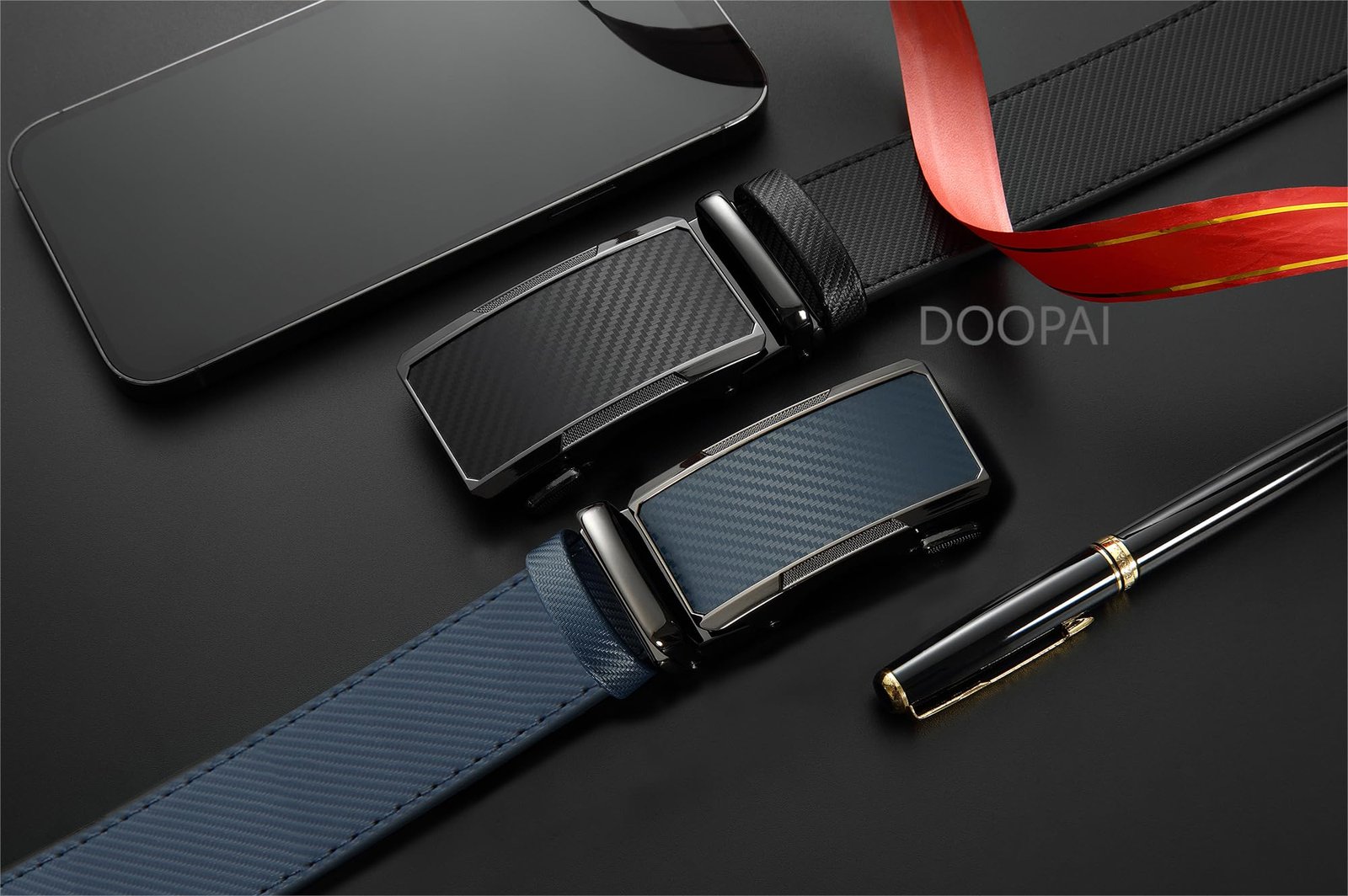 DOOPAI Men’s Adjustable Ratchet Belt – Black Leather Dress Belt for Men, Customizable Fit, Easy to Use, Maximum Durability